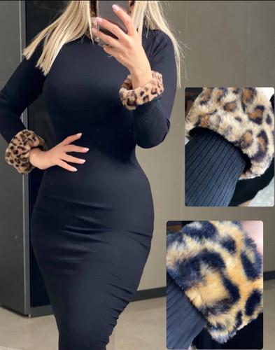 پیراهن ماکسی استین خز پلنگی