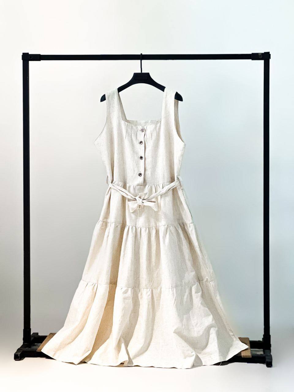 سارافون ساحلی طبقه ای لینن سینه دکمه