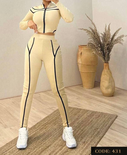ست کراپ و شلوار رگه دوزی تک رنگ