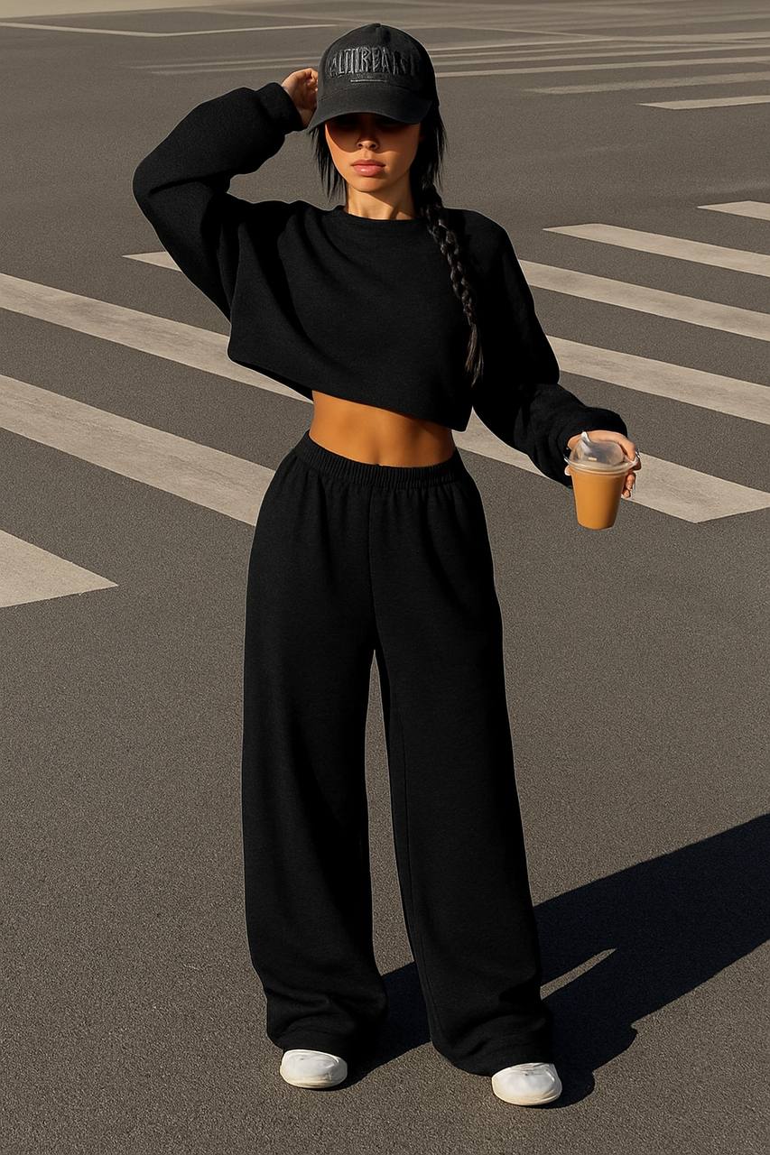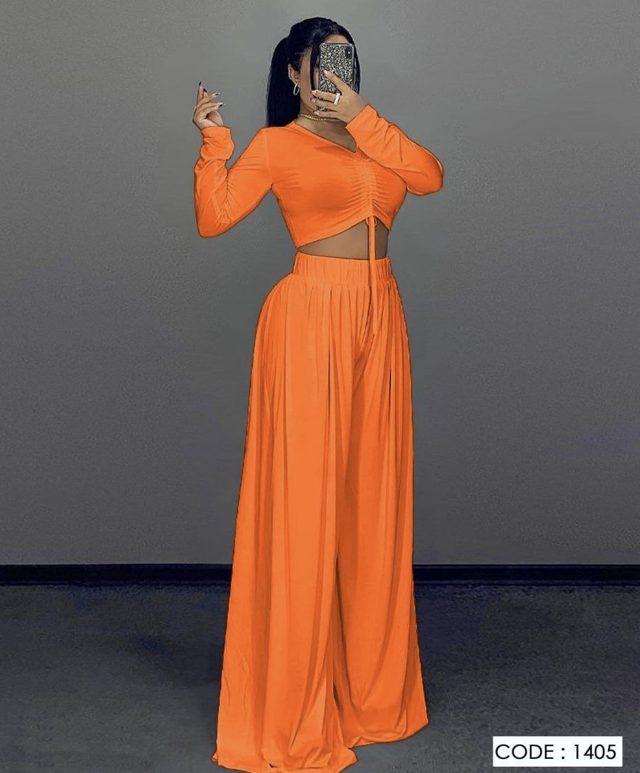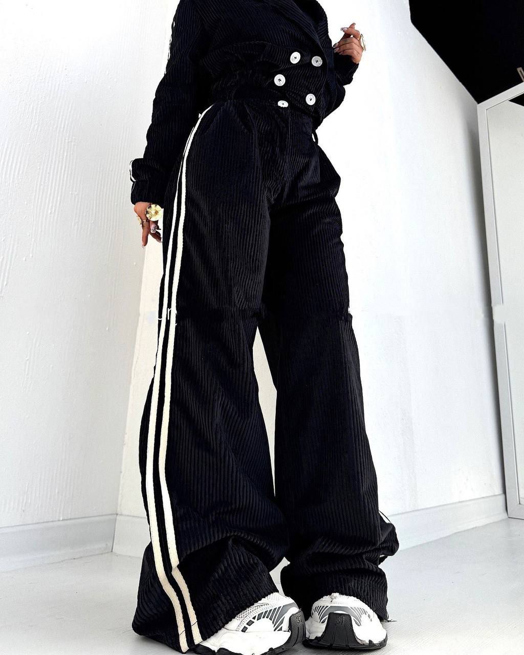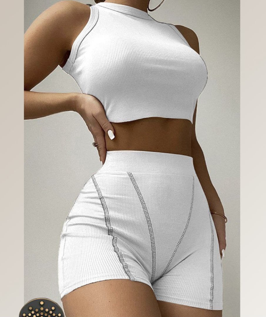 ست کراپ و شلوار رگه دوزی تک رنگ