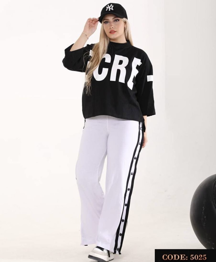 بلوز شلوار فانریپ لبه سفید چاکدار