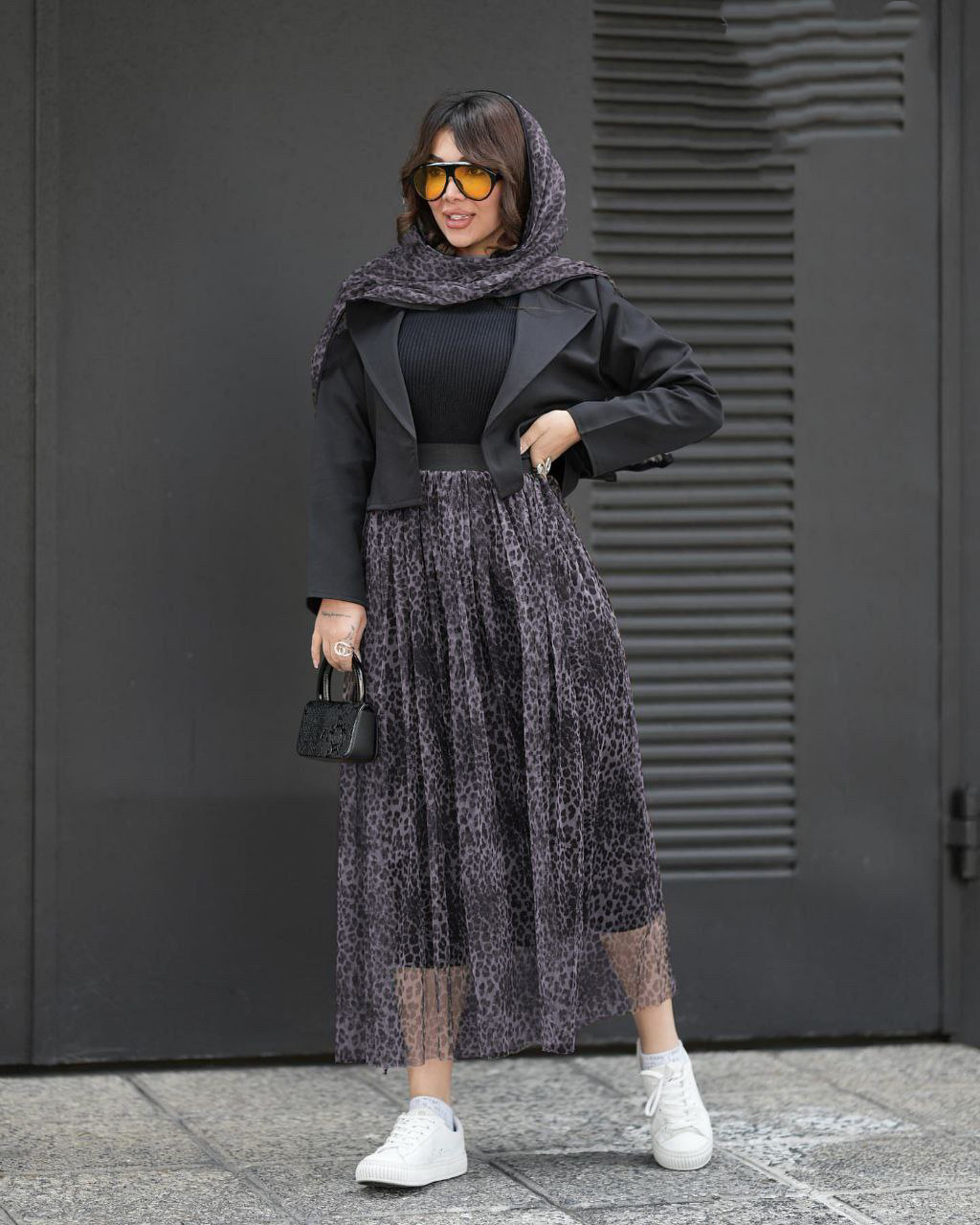 ناموجودست بلوزو دامن پلنگی بافت زنانه