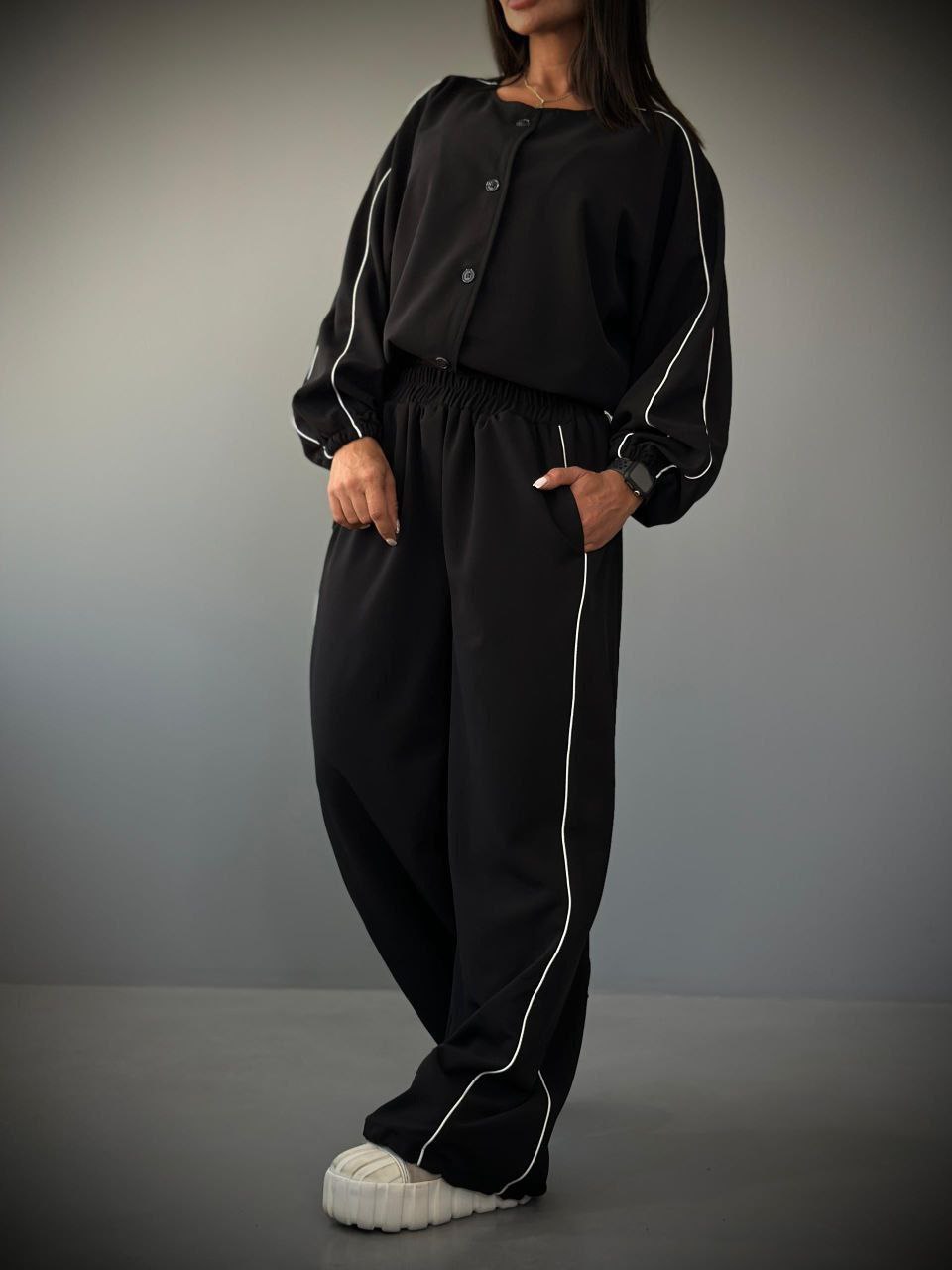 ست تیشرت شلوار بغل دکمه تک رنگ