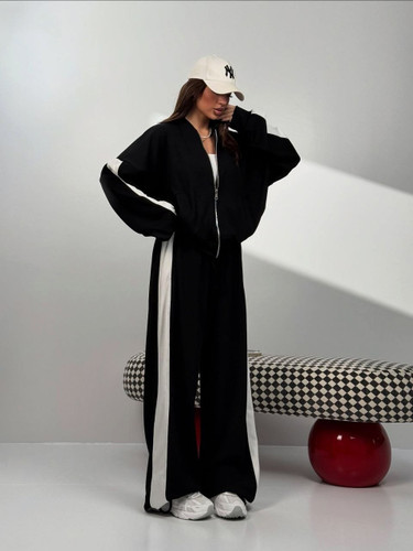 ست سویشرت شلوار بگ ساده دورنگ