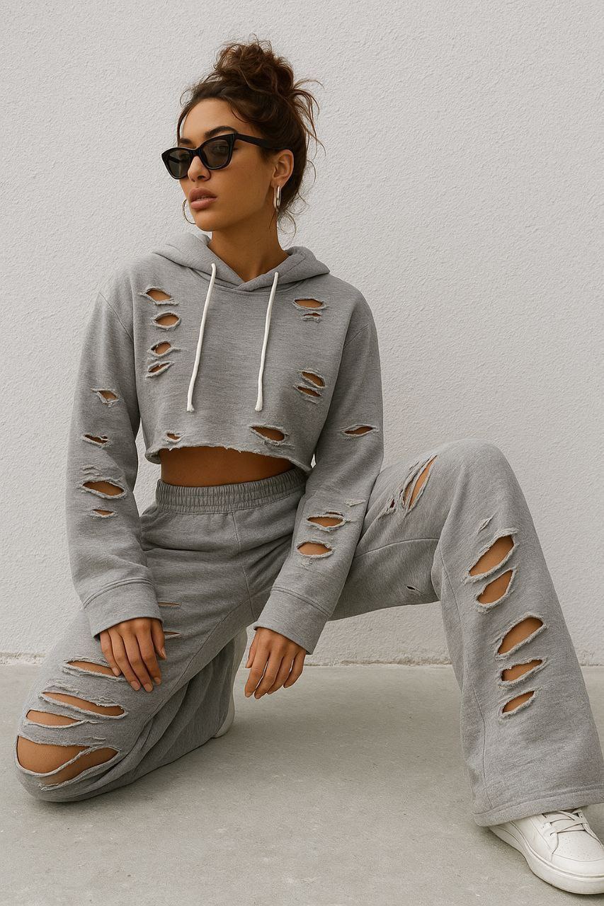 ست کراپ و شلوار قانریپ نواردوزی