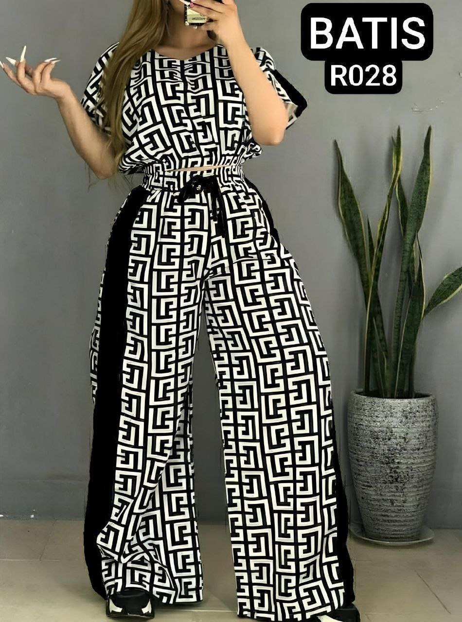 ست کراپ و شلوار بگ طرحدار در دو سایز