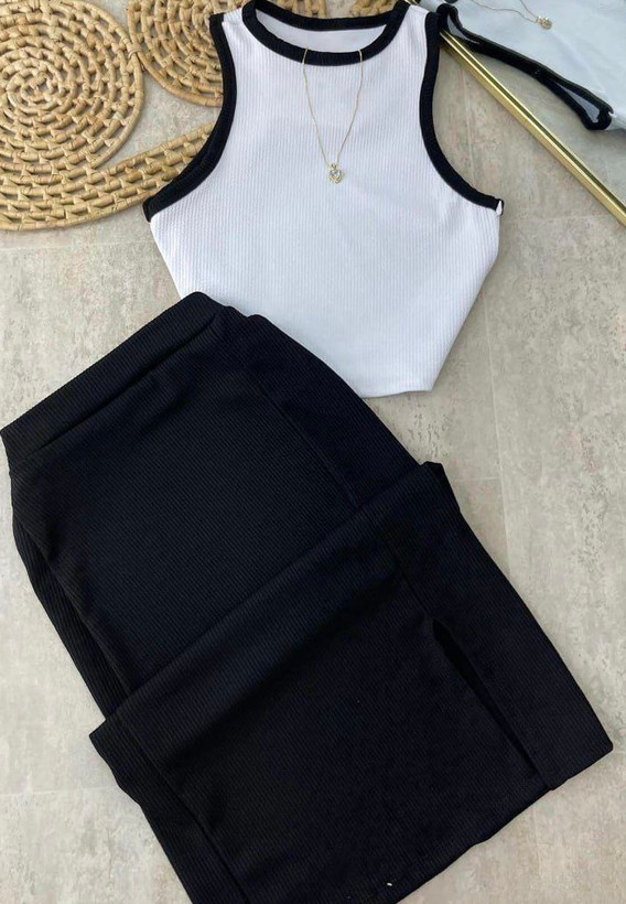 ست کراپ و دامن فامریپ زنانه بغل چاک