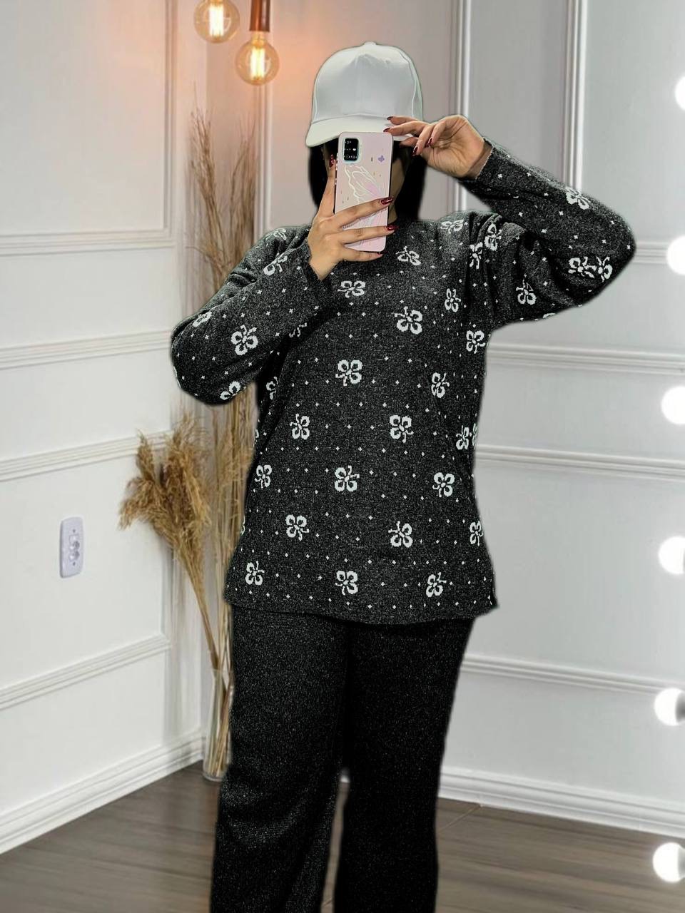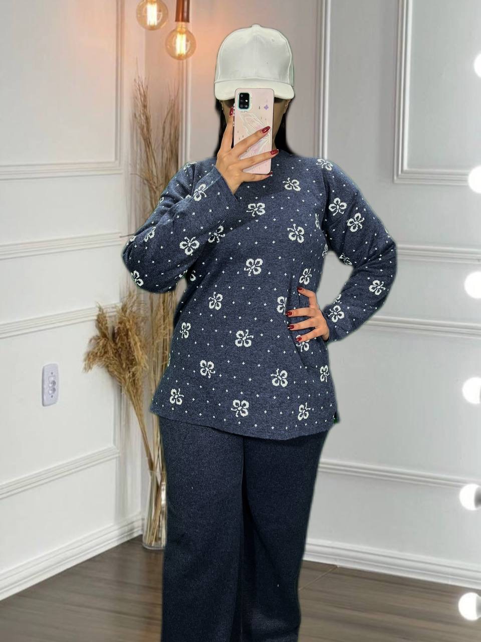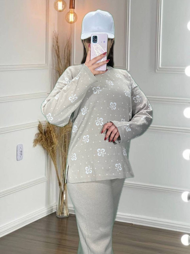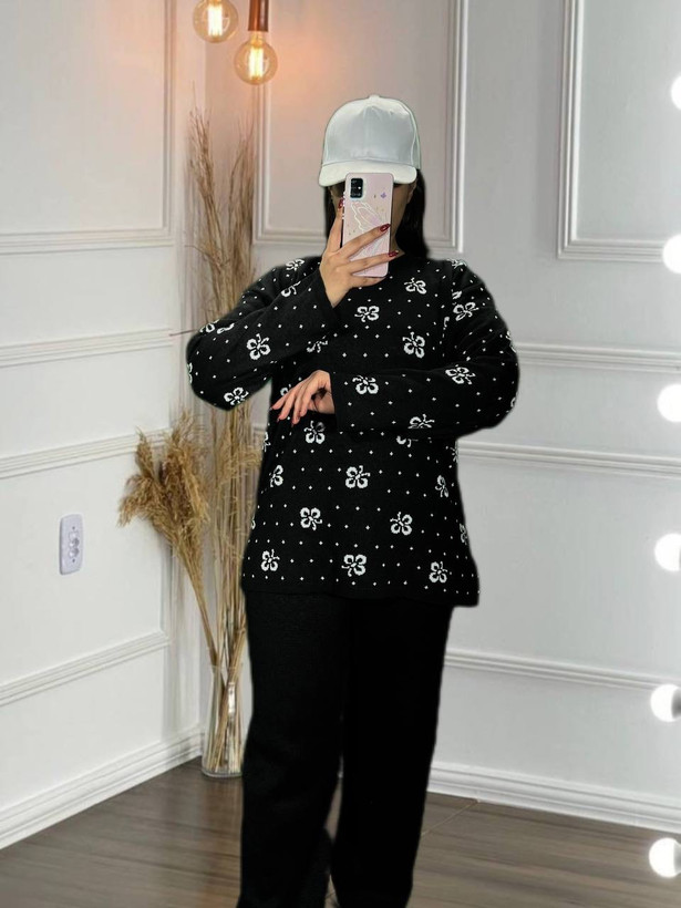 بلوز شلوار بافت طرح گل بابونه