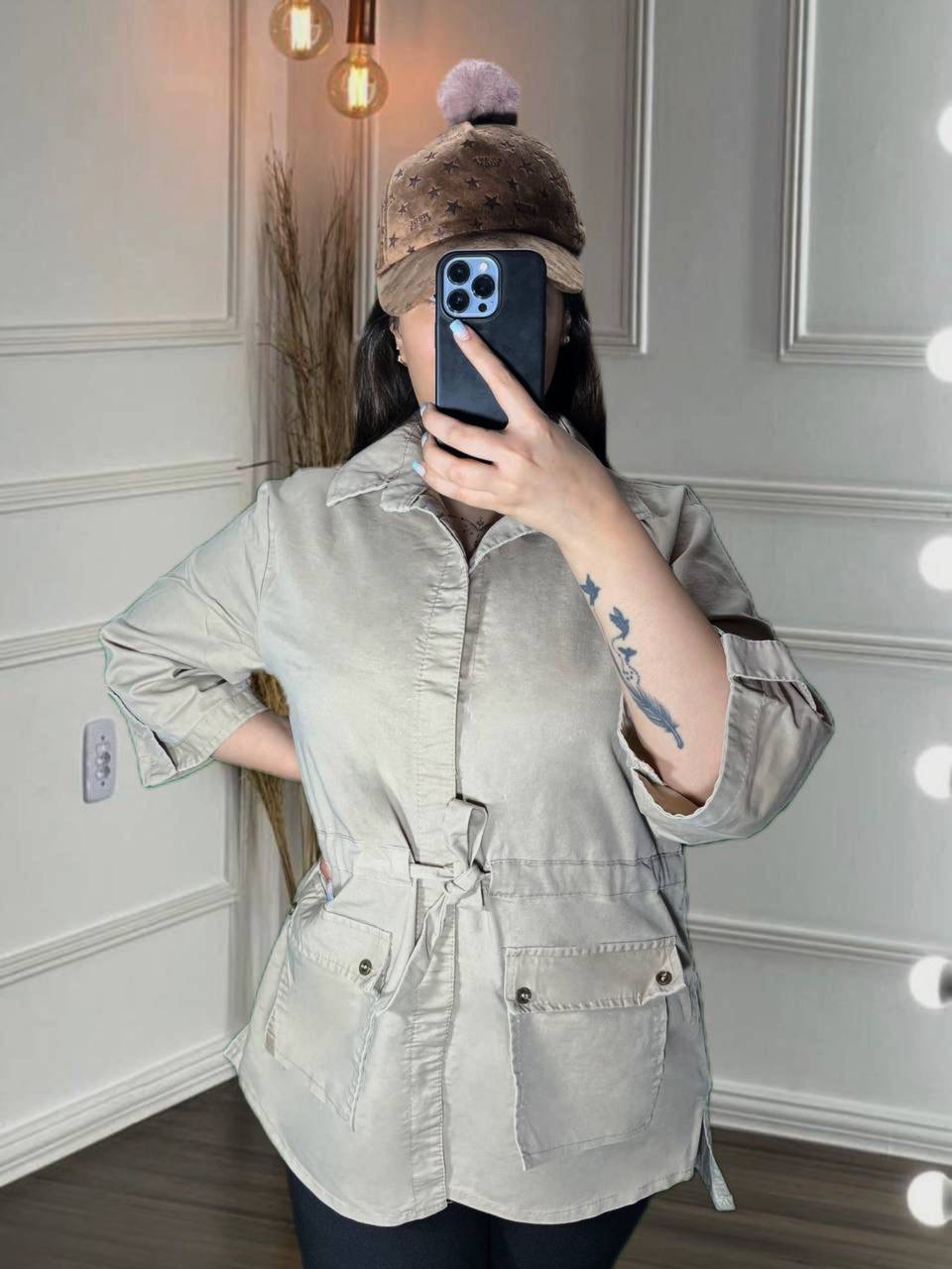 مانتوزنانه کتان دوجیب کمرگتر