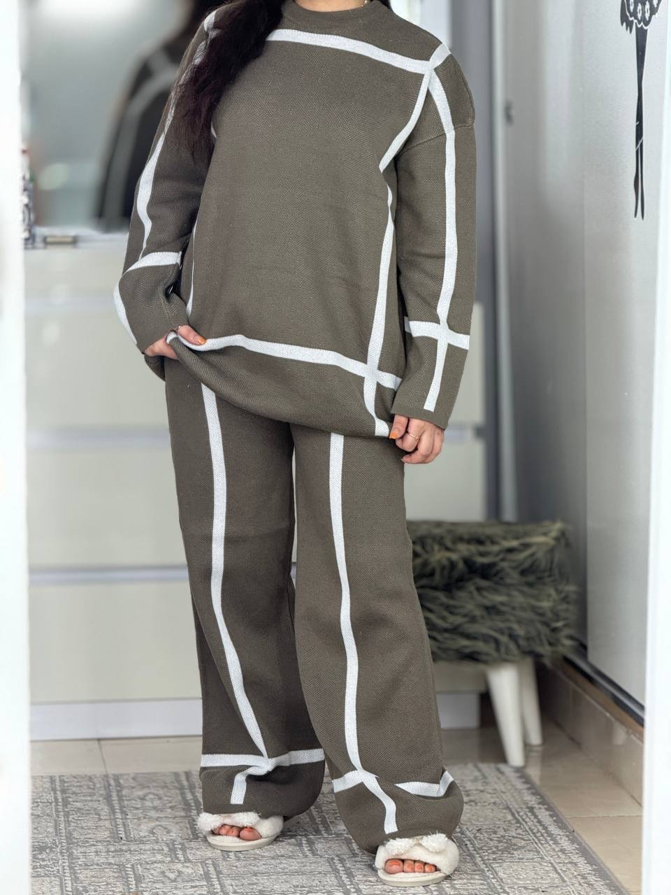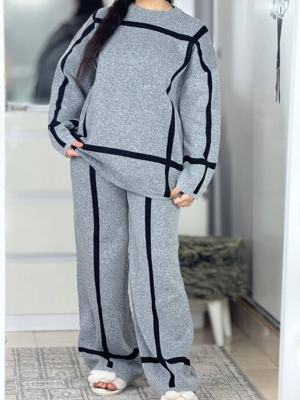 ست ژاکت و شلوار بافت مربع فیری تا۴۴
