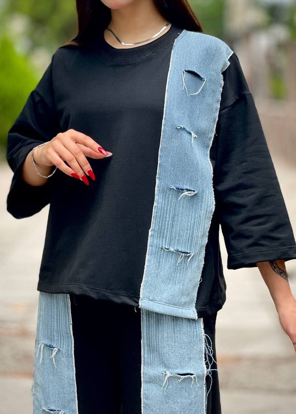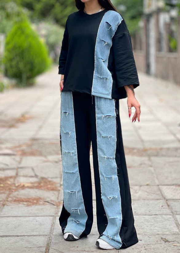 ست تیشرت شلولر جین زاپدار