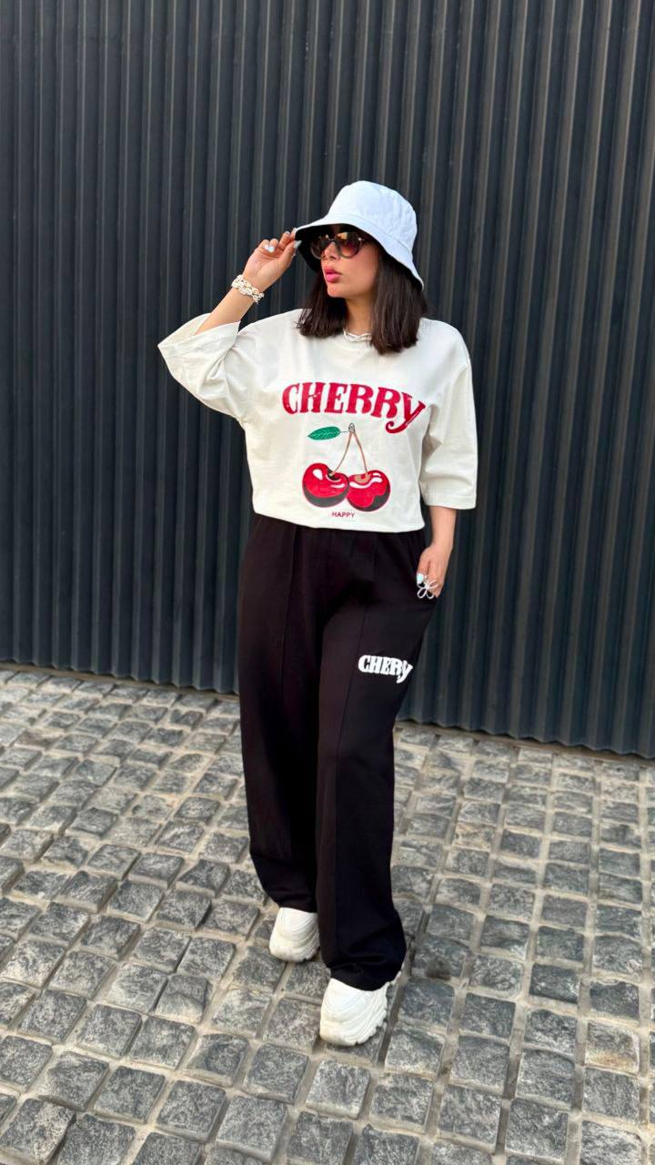 ست تیشرت شلوار زنانه گیلاس جنس پنبه