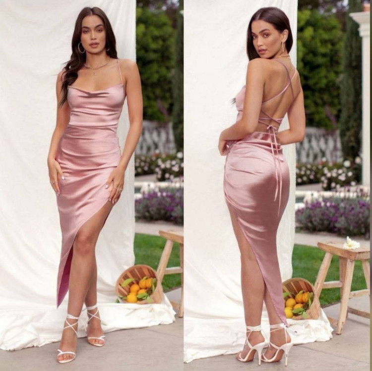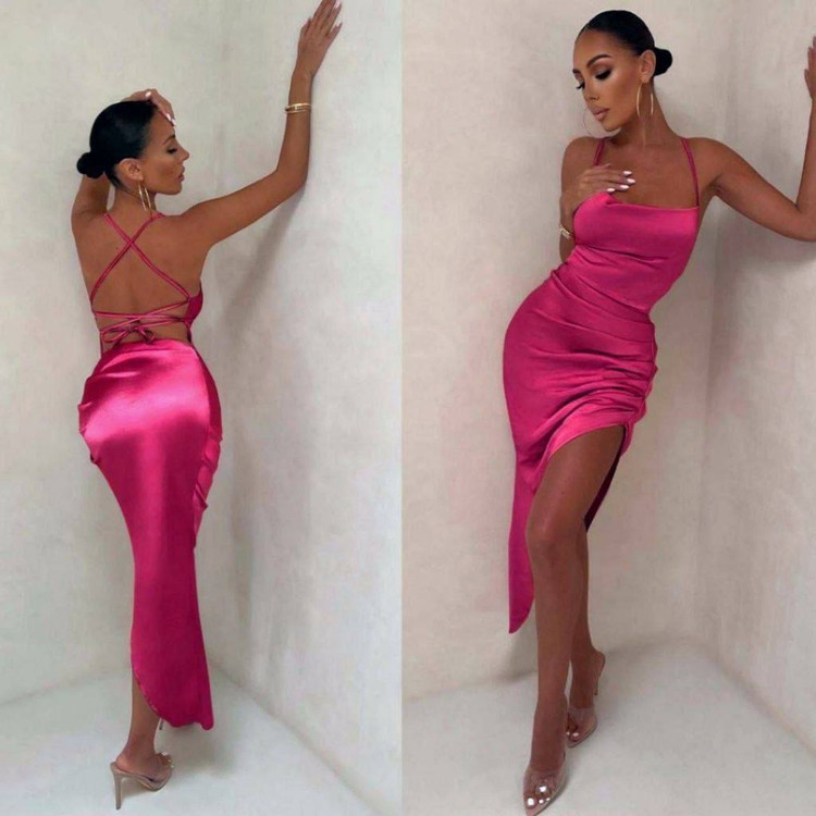 پیراهن ساتن بلند پشت بندی بغل چاک