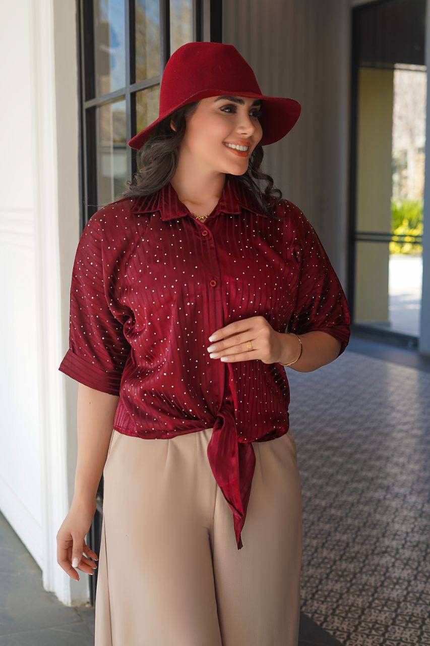 #شومیز جلوگره نگینی ساتن مارشال