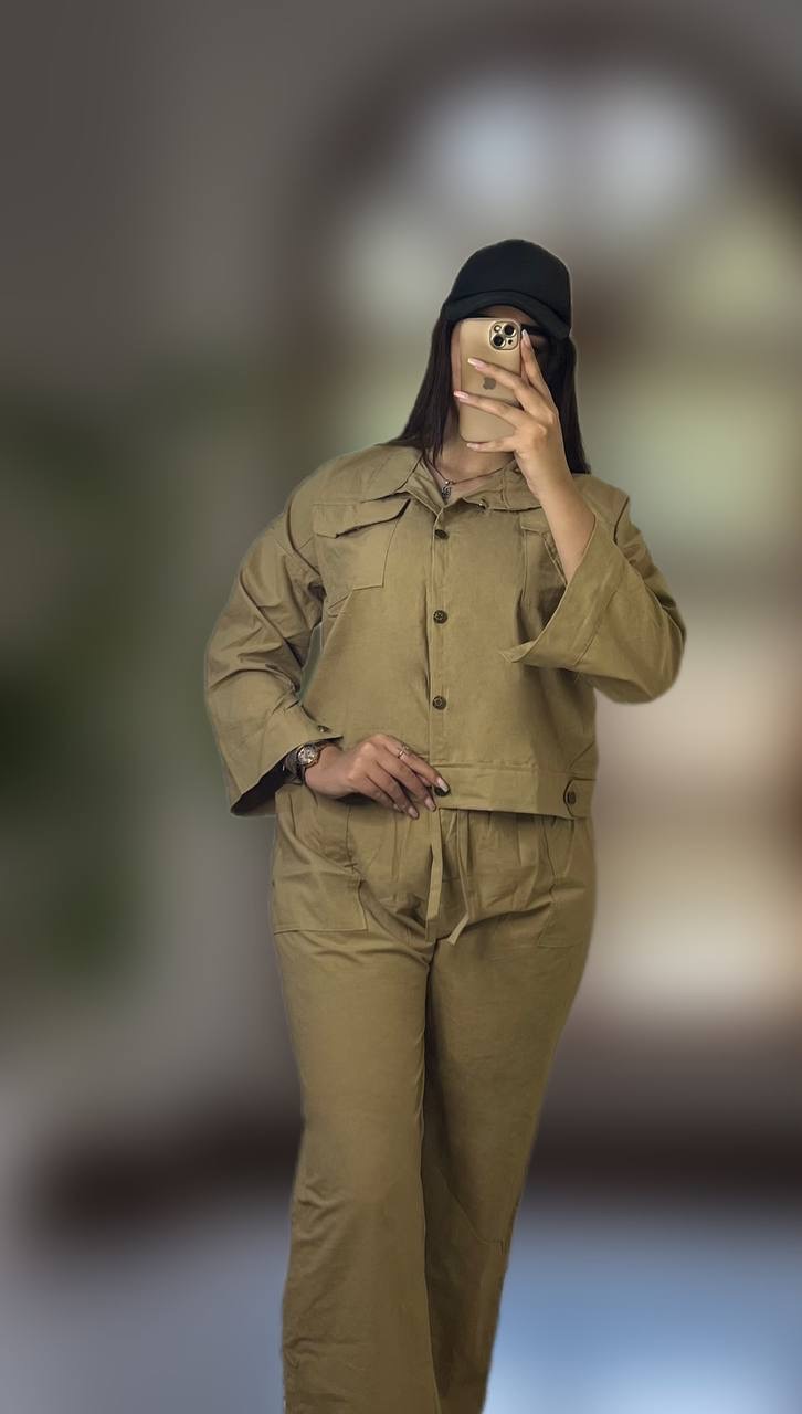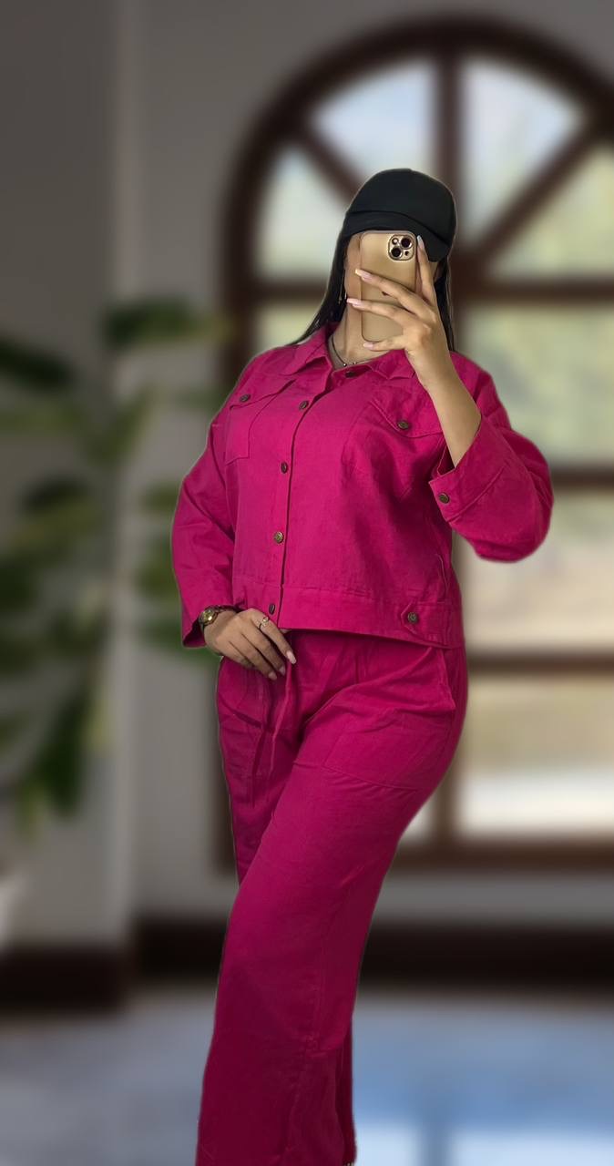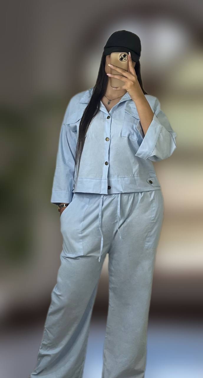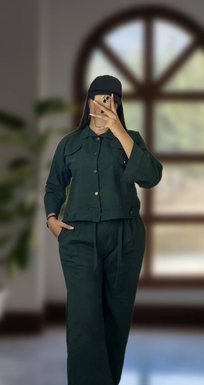 ست کت و شلوار لنین بگ زنانه دوجیب