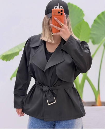 بارونی کوتاه دکمه دار پارچه کتان تی سی